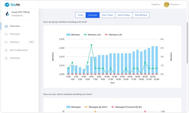 Teleme این ابزار یکی از محبوبترین سرویسها برای تحلیل و مدیریت گروههای تلگرامی است. با آن میتوانید فعالیت اعضا، عملکرد مدیران دیگر و میزان مشارکت کاربران را زیر نظر داشته باشید. هرچند ابزار پولی است، اما یک ماه استفادهی رایگان ارائه میدهد.