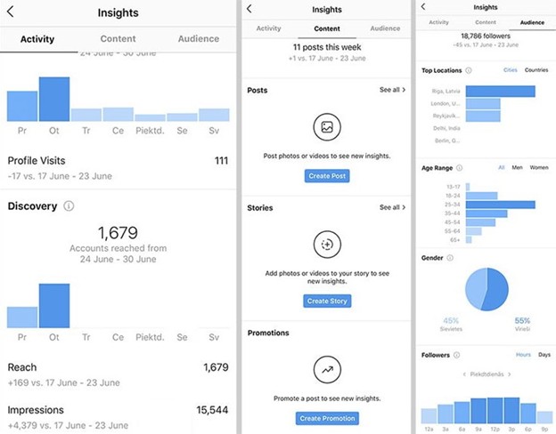 در تصویر زیر، نمونه آنالیز پیج اینستاگرام را با استفاده از ابزار Insights مشاهده میکنید.